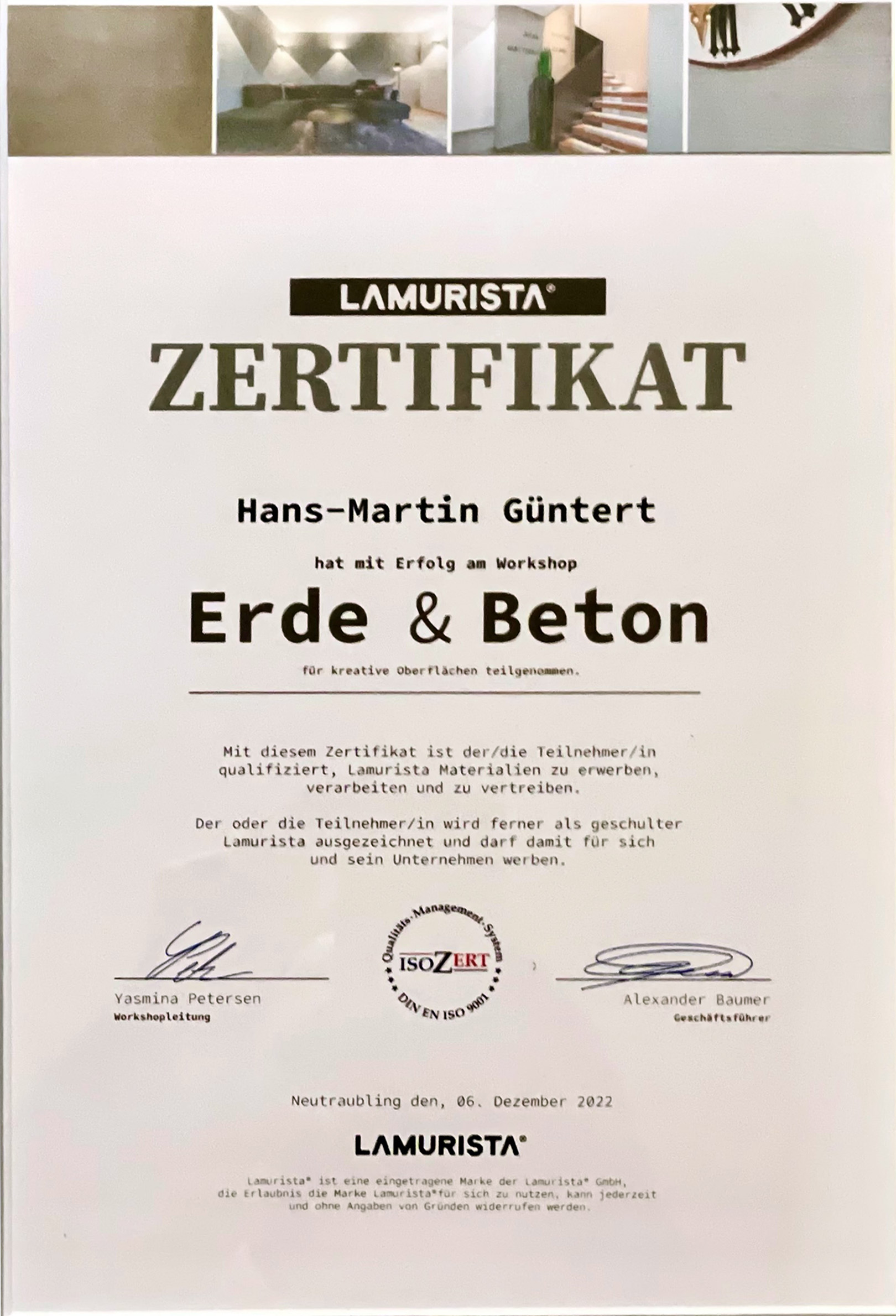 Bereits seit 1997 ist Hans-Martin Güntert in Neudenau und Umgebung für private Haushalte und Unternehmen tätig. 2022 gründete er die MalerManufaktur, um seinen Kunden nicht nur weiterhin klassische Malerarbeiten bieten zu können, sondern das Spektrum auch auf außergewöhnliche Techniken zu erweitern. Auf Aus- und Weiterbildung wird größter Wert gelegt, damit das Leistungsangebot stets auf dem aktuellen Stand bleibt. So ist unser Unternehmen seit neuestem auch Lamurista®-zertifiziert.